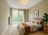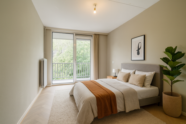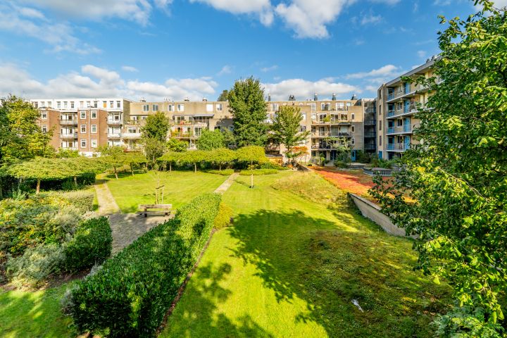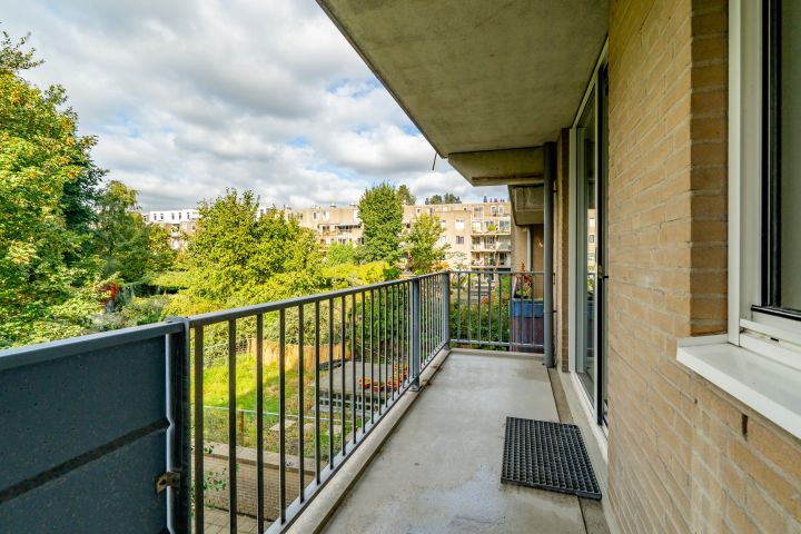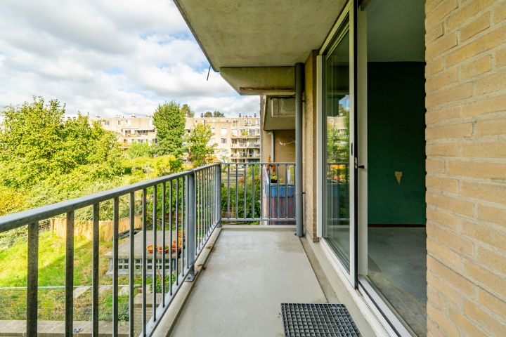 Het balkon van circa 7 m² is via een grote schuifpui bereikbaar vanuit de slaapkamer en ligt gunstig op het westen. Vanaf hier heb je een vrij en groen uitzicht en kun je in alle rust en privacy genieten van de zon in de late uurtjes.