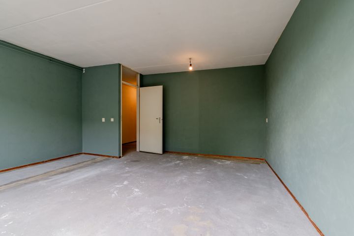 Aan de voorzijde ligt de woonkamer, een ruime en lichte plek waar het daglicht royaal naar binnen valt en waar je alle mogelijkheden hebt om een gezellige zithoek en eethoek te creëren.