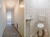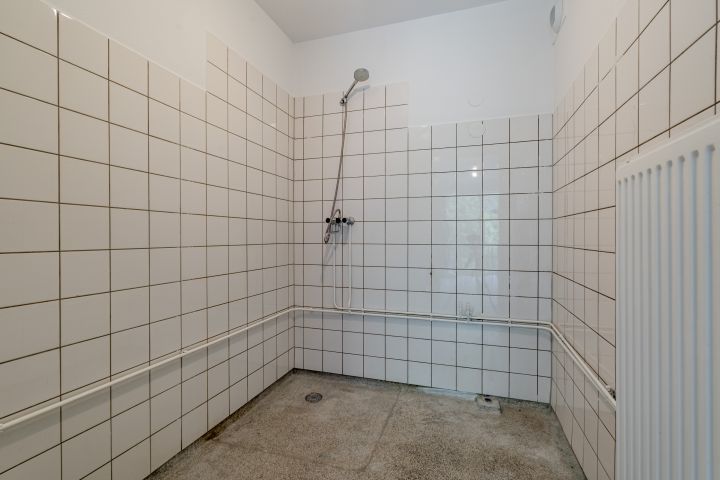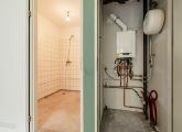 The bedroom is located at the rear of the house and is a good size. From here, you reach the bathroom, which is simply designed and can be modernized to your own taste. Adjacent to the bathroom is a separate room housing the central heating boiler.