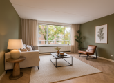 At the front of the apartment is the living room, a spacious and bright space bathed in natural light, offering ample opportunities to create a cozy sitting and dining area.