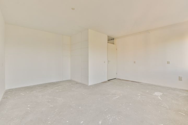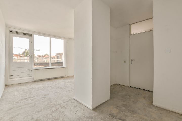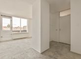 Entree, hal, de badkamer met een douche, wastafel en wasmachine aansluiting, separate toilet met fonteintje, kast met de cv-ketel, de woonkamer, dichte keuken (dient nog geplaatst te worden door de koper) en een slaapkamer en een balkon zowel aan de voor-, als aan de achterzijde.