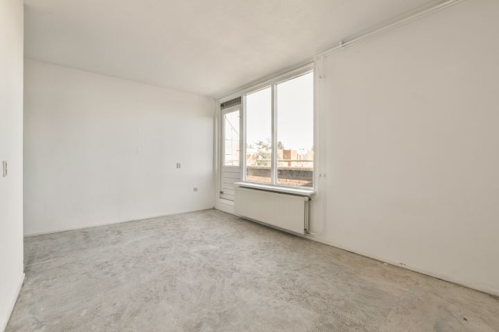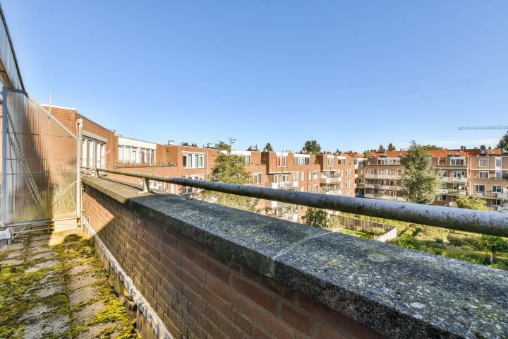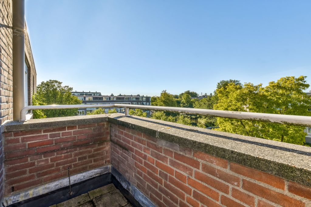 Heerlijk 2/3 -kamer appartement van 69 m2 gelegen op de vierde, tevens bovenste, woonlaag met een balkon aan zowel de voor- en achterzijde.