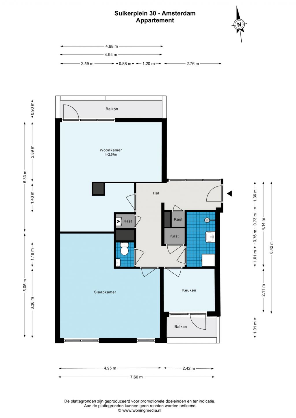 * De plattegrond betreft een indicatie van het appartement. Aan de opgegeven maten kunnen geen rechten worden ontleend.