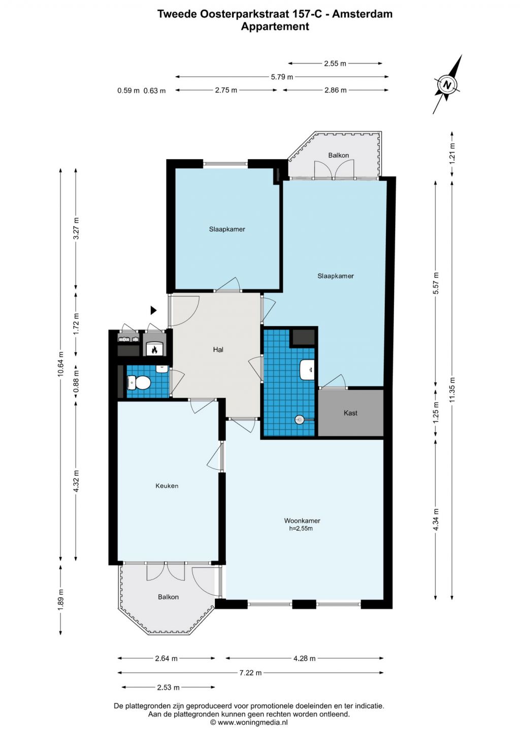 - De plattegrond betreft een indicatie van het appartement. Aan de opgegeven maten kunnen geen rechten worden ontleend.