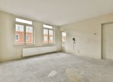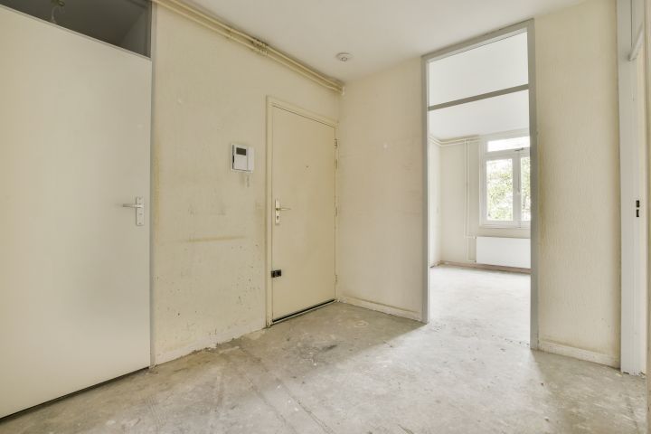 Entree, hal, aan de voorzijde de woonkamer en de dichte keuken (dient nog geplaatst te worden door de koper), vanuit de woonkamer en de keuken toegang tot een balkon, de badkamer met een douche en wastafel, separate toilet met fonteintje en aan de achterzijde twee slaapkamers en een tweede balkon.