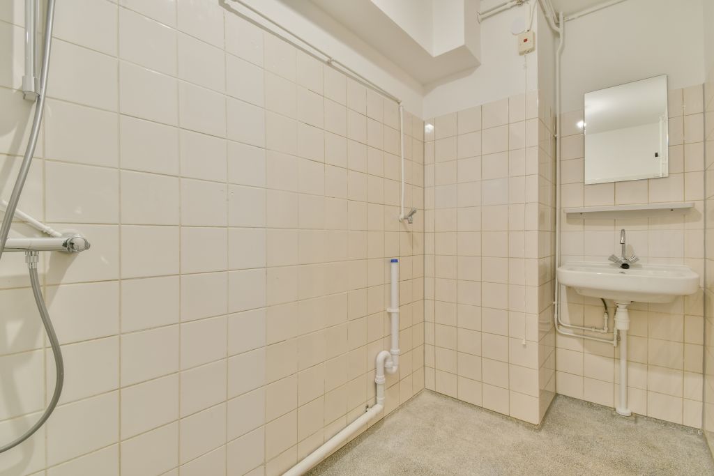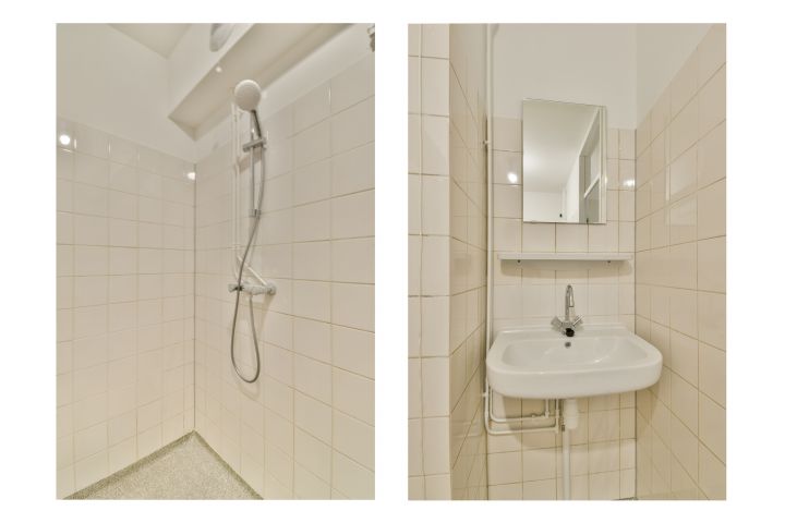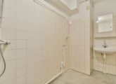 Centraal in de woning ligt de badkamer, voorzien van een wastafel, douche en aansluiting voor de wasmachine. Daarnaast is er een separaat toilet. Op de begane grond beschikt de woning over een extra berging van ca. 5 m², ideaal voor fietsen of opslag.