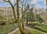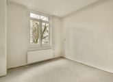 Via het gemeenschappelijke trappenhuis bereik je de eerste verdieping. De ruime centrale hal biedt toegang tot alle vertrekken. Aan de achterzijde bevinden zich twee slaapkamers, waarvan één met een praktische inbouwkast en openslaande deuren naar het balkon op het noordwesten, met uitzicht over de rustige binnentuin.