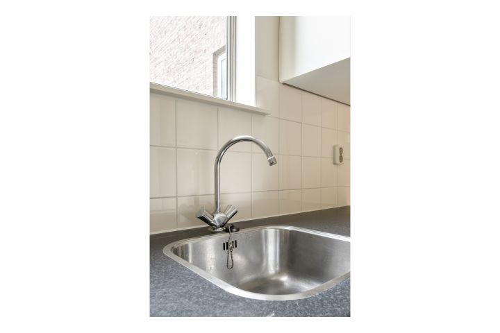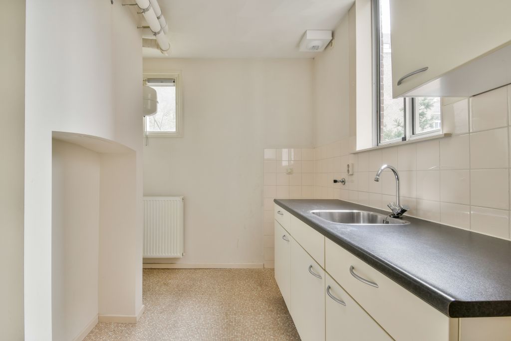 Aan de achterzijde is de keuken gevestigd. Vanuit het keuken raam kijk je uit op de groene binnentuin van het complex.