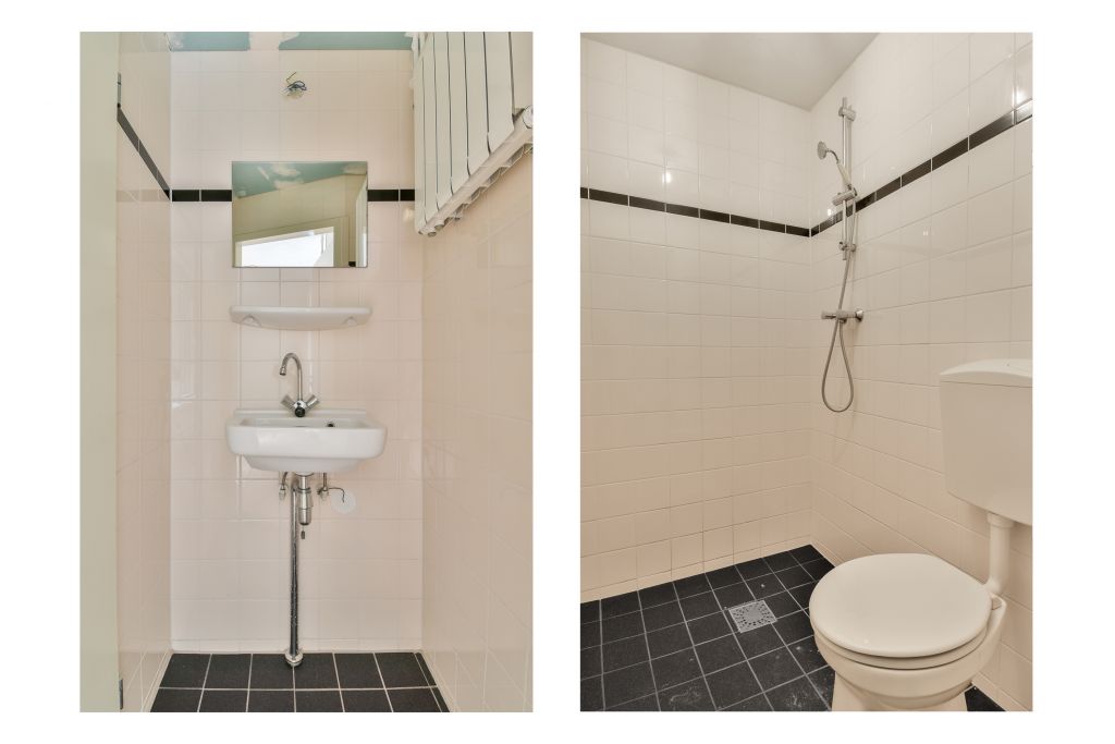 Via de entree stap je direct de woonkamer in. Deze goed bemeten ruimte is eenvoudig te renoveren naar een prettige woonkamer met zithoek. Hier aangrenzend zit de badkamer inclusief inloopdouche, toilet en wastafel.