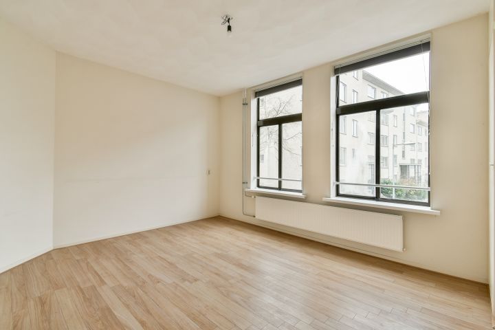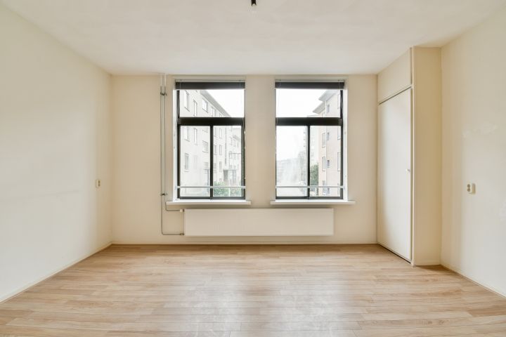 Aan de voorzijde van de woning bevindt zich de slaapkamer. De ruimte leent zich perfect voor het maken van een fijne master bedroom. Vanaf hier heb je uitzicht op de Kostverlorenvaart.