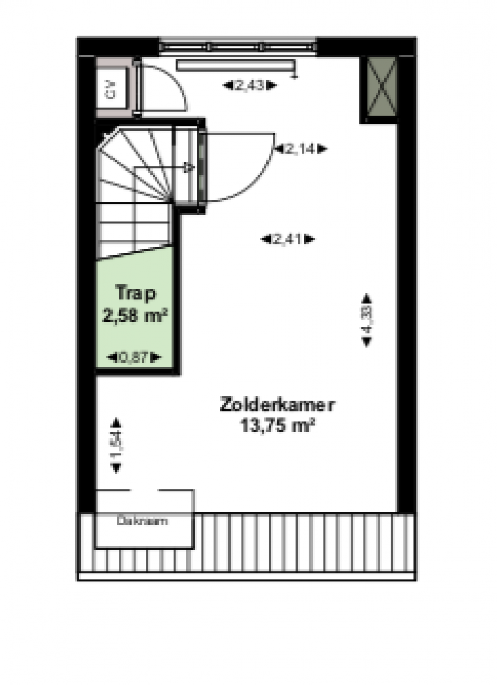 Derde verdieping met een slaapkamer en de C.V.-ketel.