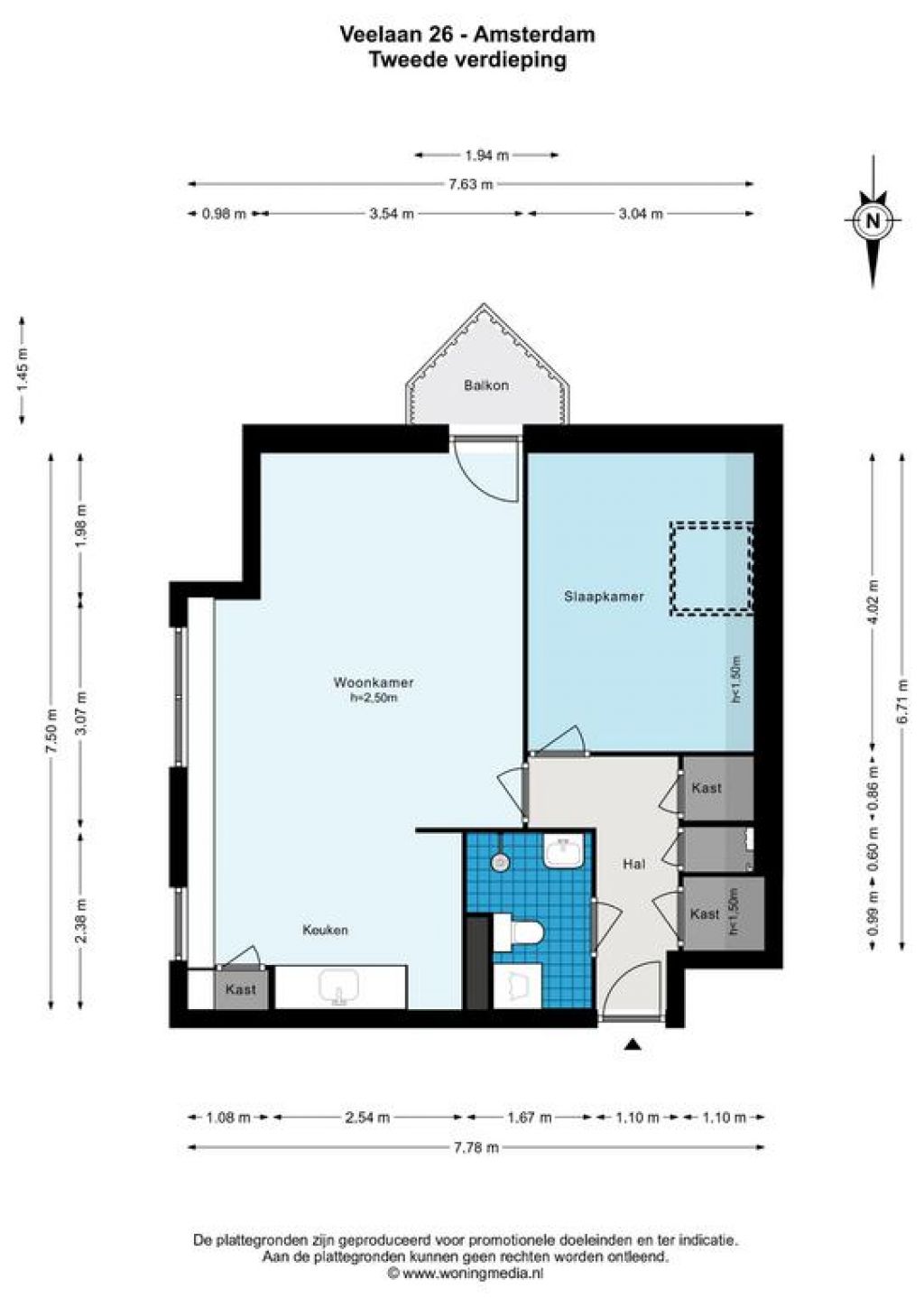* De plattegrond betreft een indicatie van het appartement. Aan de opgegeven maten kunnen geen rechten worden ontleend.