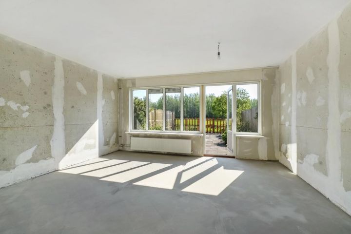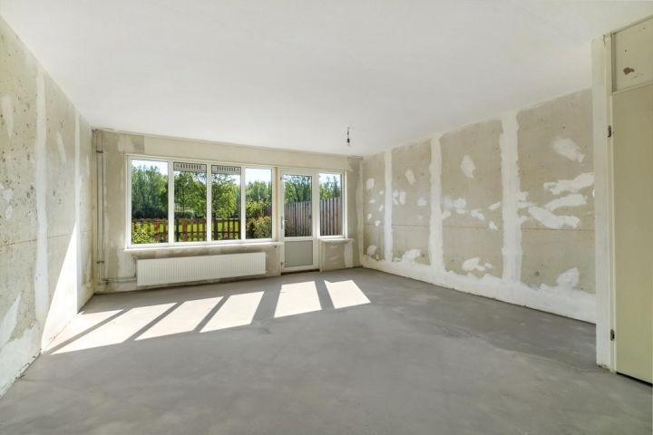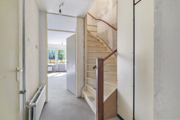 - Ruime woonkamer aan achterzijde, trapkast, aansluitingen voor keuken aan de voorzijde;