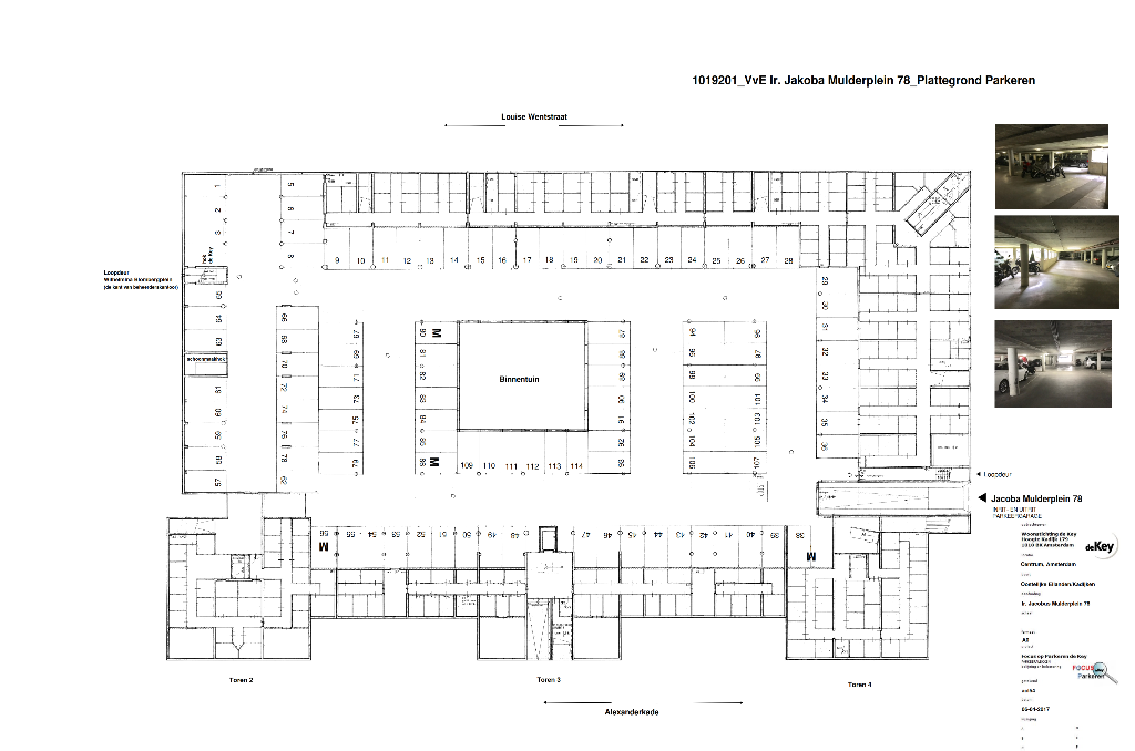 Overdekte parkeergarage op het Ir Jakoba Mulderplein. Getoonde plattegrond is de garage op nummer 80. Er zijn zowel motor- als autoplekken aanwezig.