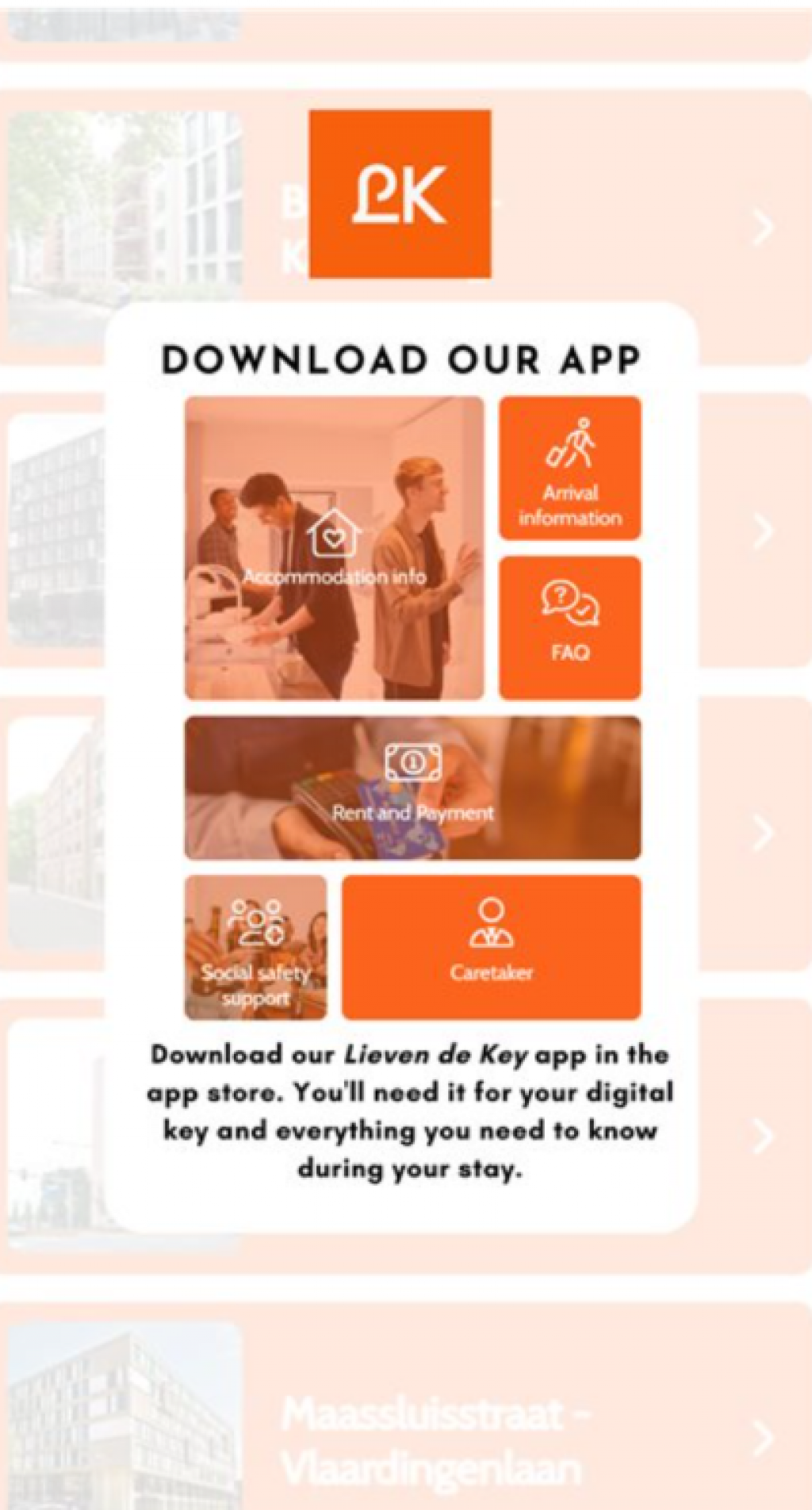 Take a look at our Lieven De Key Short Stay app for more information, for example about room inventory.