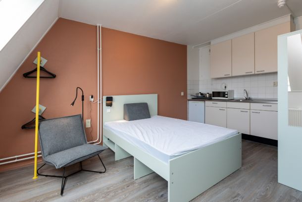 In 2020, the Prins Hendrikkade 189 A building has been beautifully refurbished. Furniture might show signs of usage. This room is keyless: the tenant enters the building and room with their smartphone. You'll receive a smartphone registration link one week prior to check-in. For more information, please check our app. You have an upstairs room with private kitchen. Shared bathroom with your neighbour below.