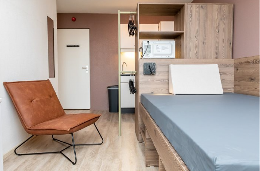 This is a keyless room: the tenant enters the building and room with their smartphone.