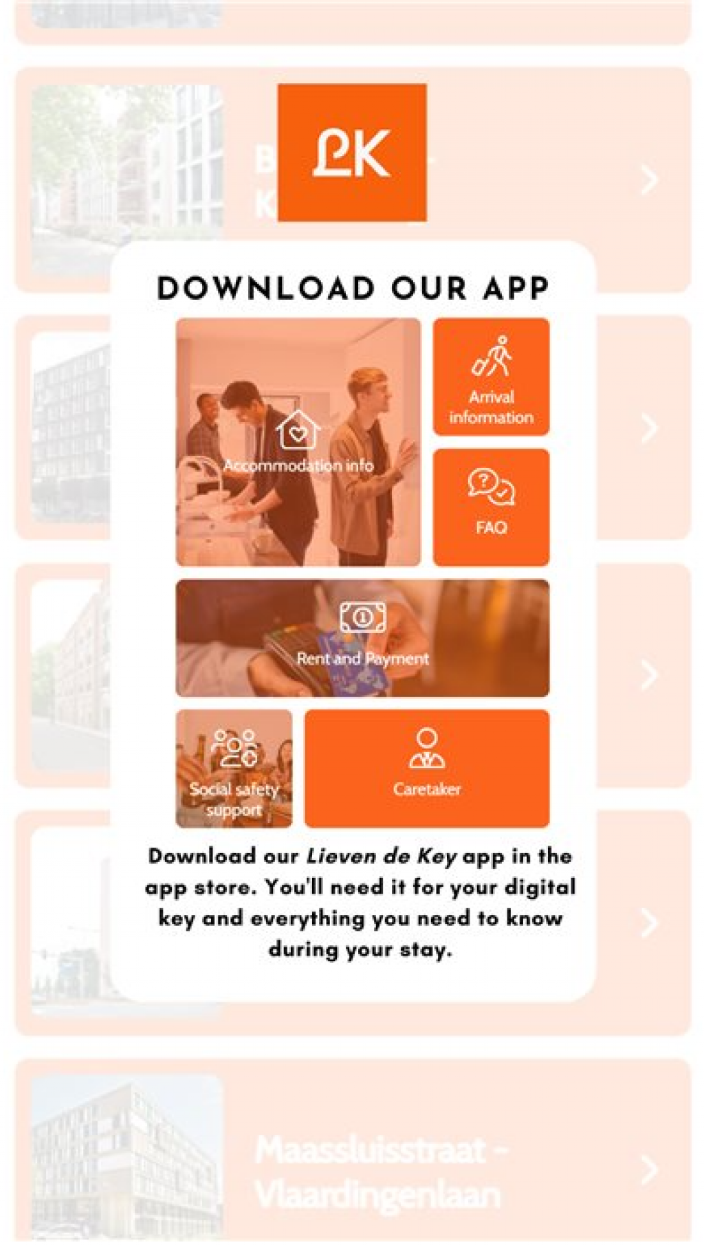 Take a look at our Lieven De Key Short Stay app for more information, for example about room inventory.